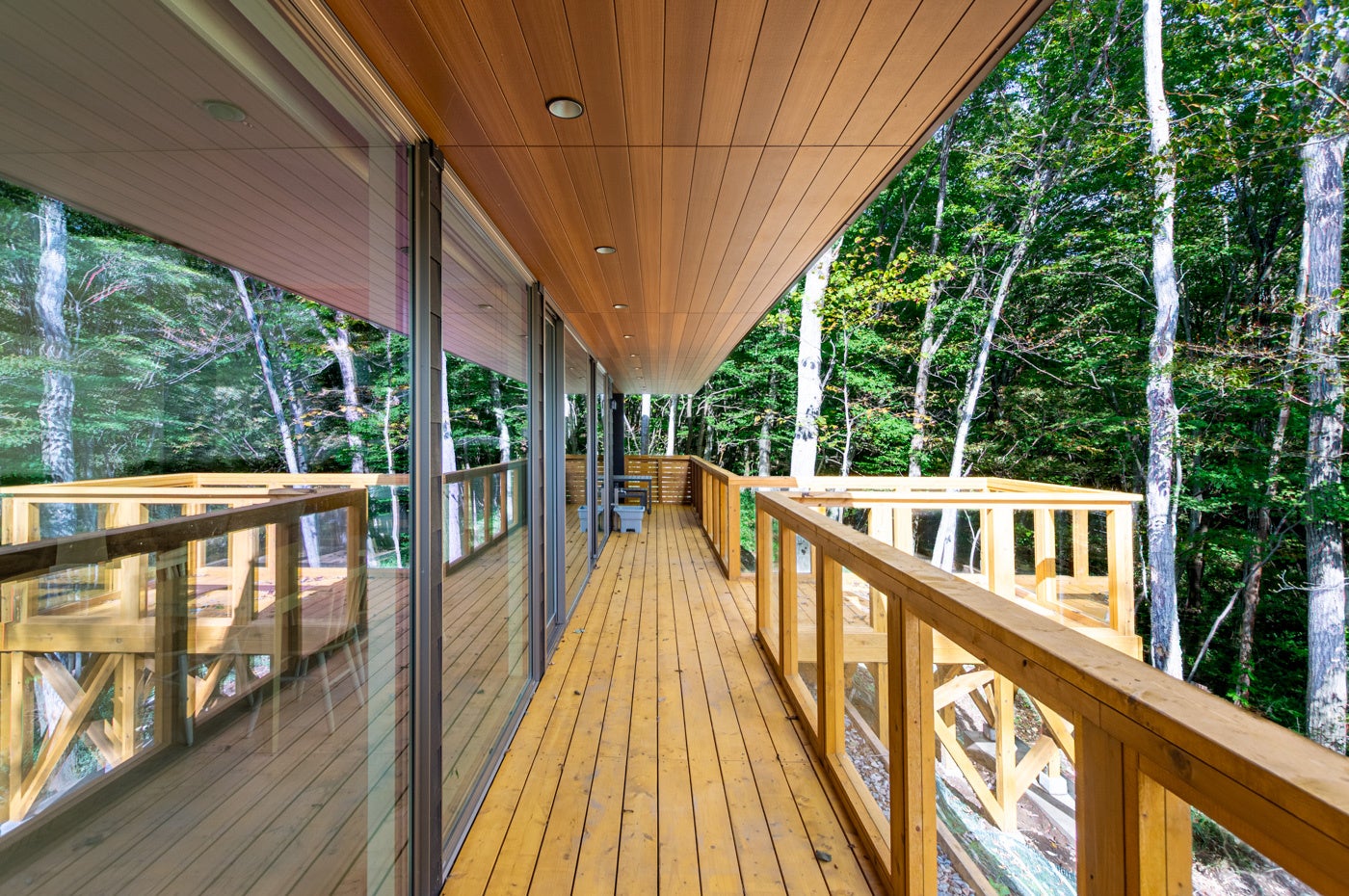 リビングから露天風呂エリアまでをつなぐ犬走デッキ(全長約20m/約50平方メートル )を設置。