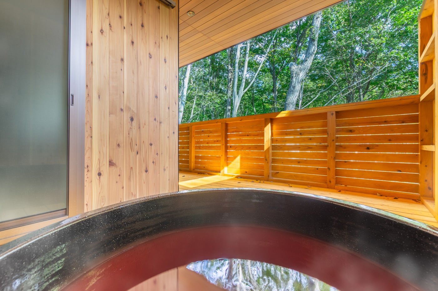 リビングから露天風呂エリアまでをつなぐ犬走デッキ