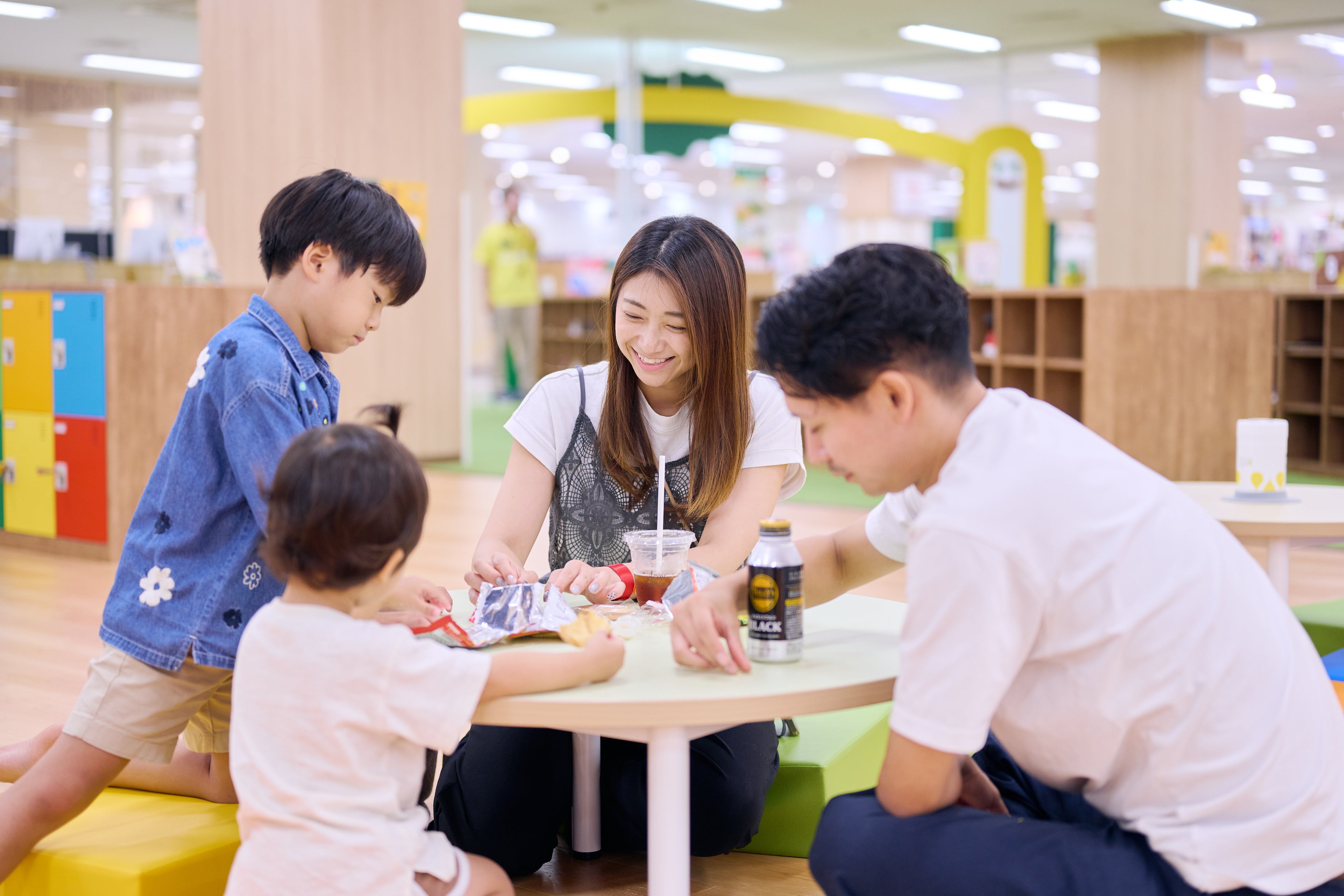 遊び疲れた時には飲食エリアや、ピクニックエリアでひとやすみ。飲食エリアは、飲食物持ち込み自由なのでお好きなタイミングでランチを食べたり、おやつを食べながらおしゃべりを楽しんだりと、ゆっくり過ごすことができます。※人工芝の「ピクニックエリア」での飲食はご遠慮ください。