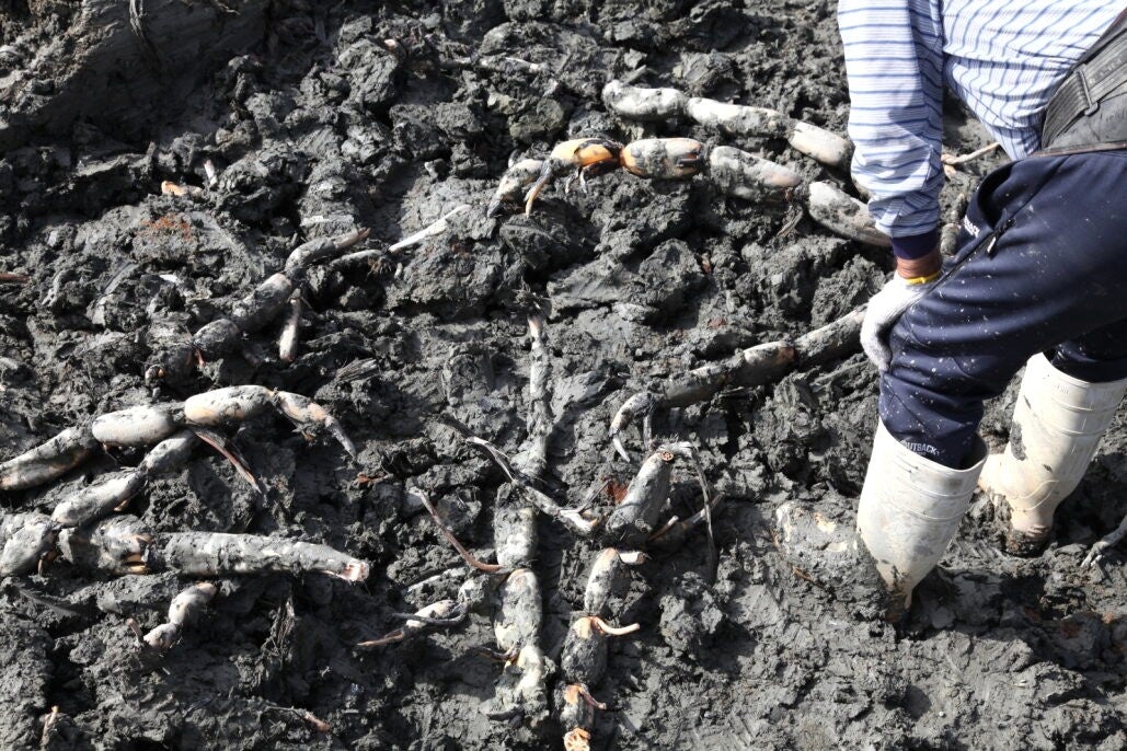 コウノトリれんこん掘り体験