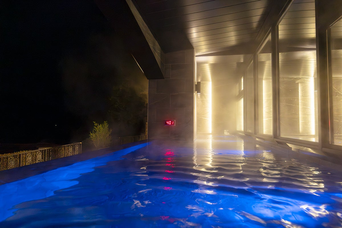 大きな窓から陽光が差し込む昼間、間接照明で趣を変える夜と、一日を通して移り変わる景観が楽しめる大浴場です。開放的な窓越しに広がる箱根の山々を眺めながら、ゆったりと温まるひと時を味わえます。落ち着きのある空間で、山々の自然を眺めながらゆったりと湯あみをご堪能ください。