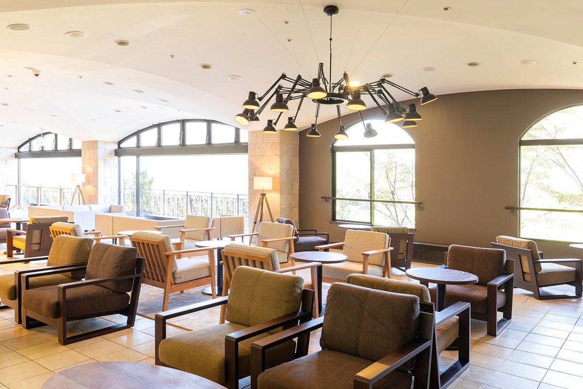 ■朝昼晩楽しめるラウンジラウンジには暖炉を設け、大きな窓からは美しい箱根の眺望を望むことができ、ゆったりとソファでおくつろぎいただけます。目の前に広がる空と緑を全身で感じたり、炎の揺らめきを眺めてリラックスしたり、思い思いの贅沢な時間をお過ごしください。