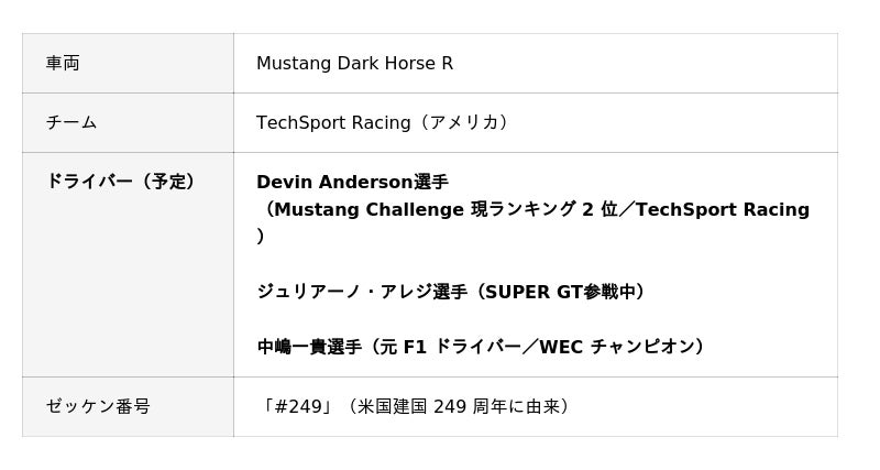 ▶Ford Mustang Dark Horse R(TechSport Racing / アメリカ)