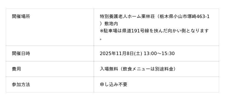 社会福祉法人丹緑会(栃木県小山市 理事長:山中桓夫、以下「当法人」)が運営する特別養護老人ホーム栗林荘は、日本財団「みらいの福祉施設建築プロジェクト 2021」の採択も経て、この度リニューアルオープン祭を11/8(土)13:00~15:30に開催致します。約50年間 地域の方々と共に歩んできた栗林荘は、このリニューアルを機に「介護施設」という枠を超えて、誰もが集い、つながり合える“ひらかれた居場所”として生まれ変わります。