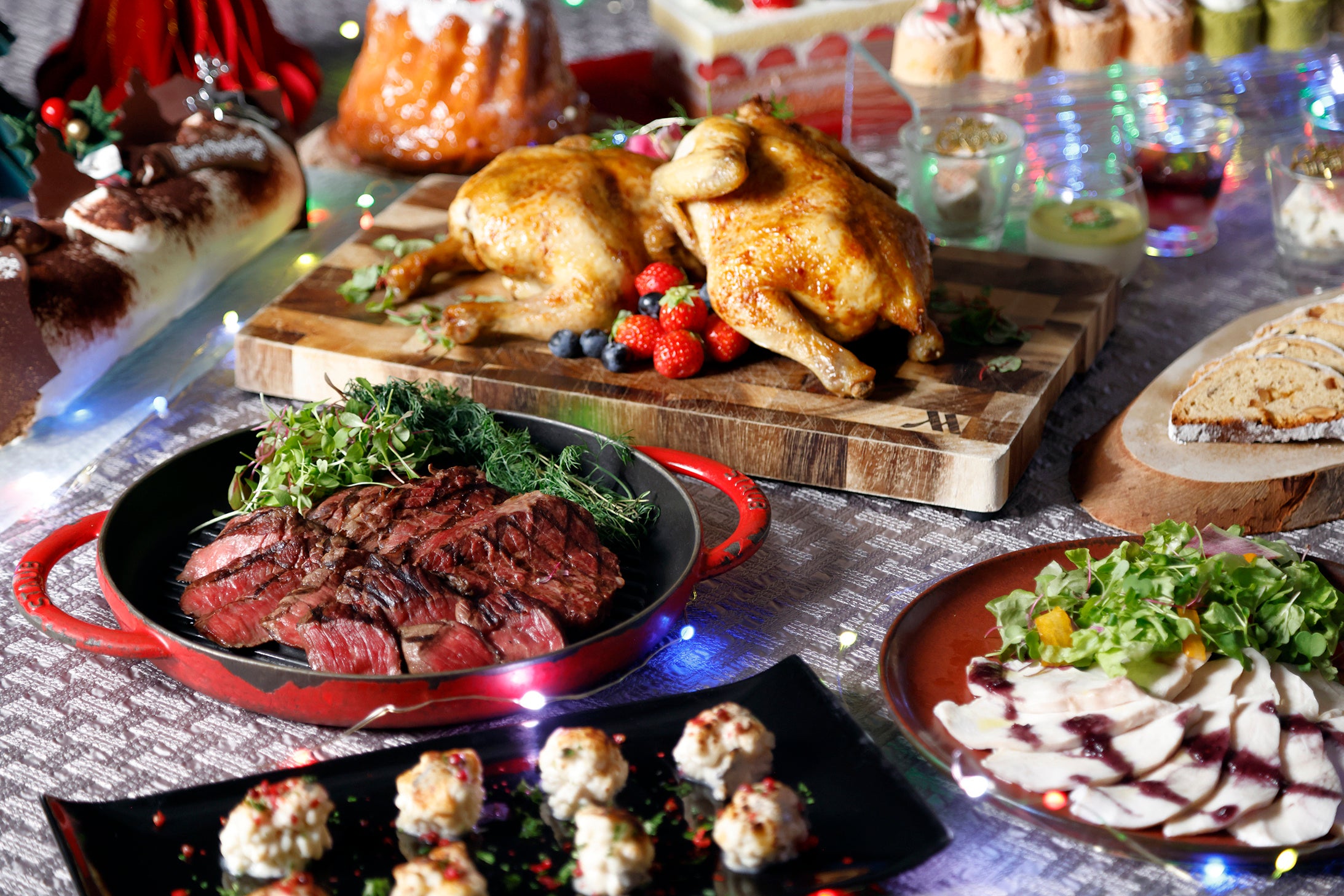 期間中のフェア「イタリアンブッフェ」のメニューに加え、「丸鶏のロースト」や「グリルビーフ」(ディナー限定)などをお楽しみいただけます。デザートには、「クリスマスショートケーキ」、「ストロベリークグロフ」も登場します。