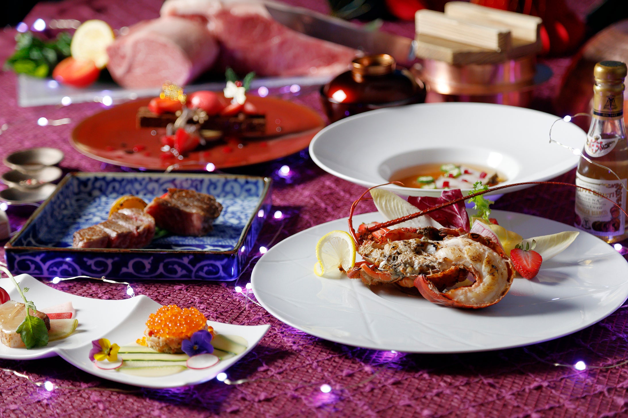 一年に一度のクリスマスにふさわしい、“オマール海老”や“鮑”などを使用した華やかなメニューを、欧風料理と鉄板焼にてご用意します。地上約270mから望む絶景の中で、よりスペシャルな時間を演出します。