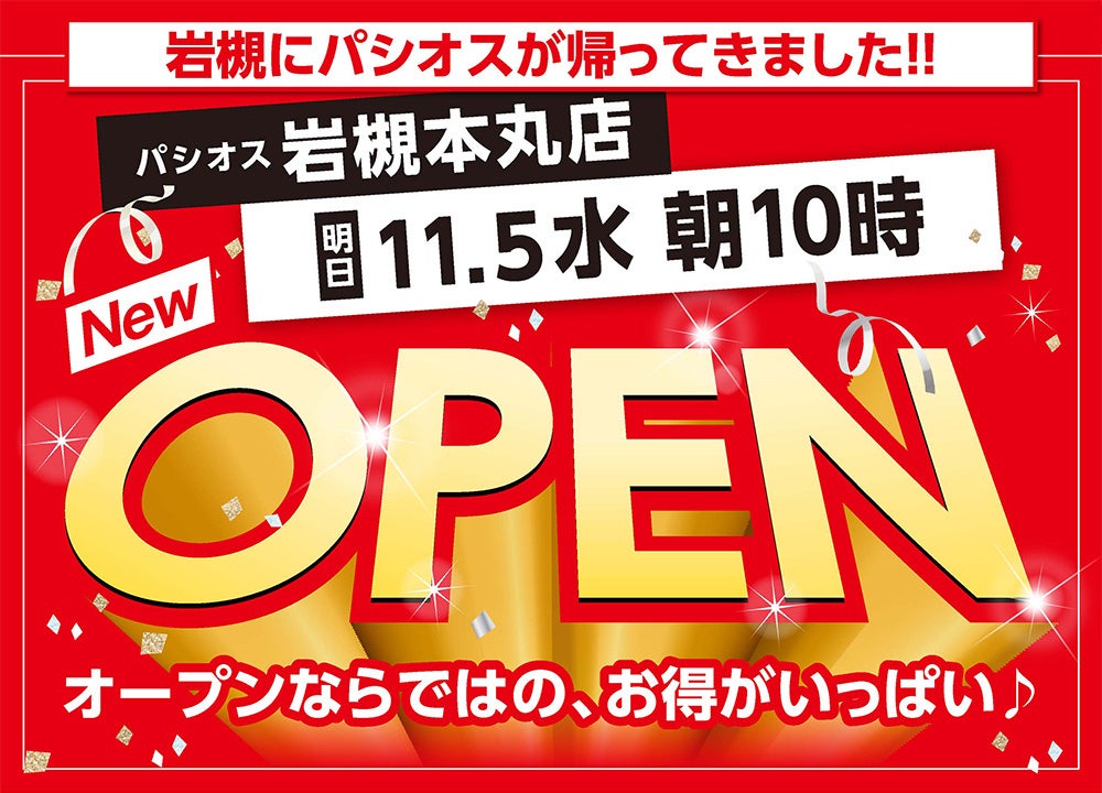 「パシオス 岩槻本丸店」は、さいたま市岩槻区の「ヤオコー岩槻本丸店」2階に、11月5日(水)オープンいたします。同店は、惜しまれつつも2023年12月に閉店した、「パシオス 岩槻店」を出店しておりました「マミーマート岩槻店」の跡地に立地し、パシオスの岩槻エリアへの出店は、「パシオス 岩槻店」閉店後、約2年ぶりとなります。