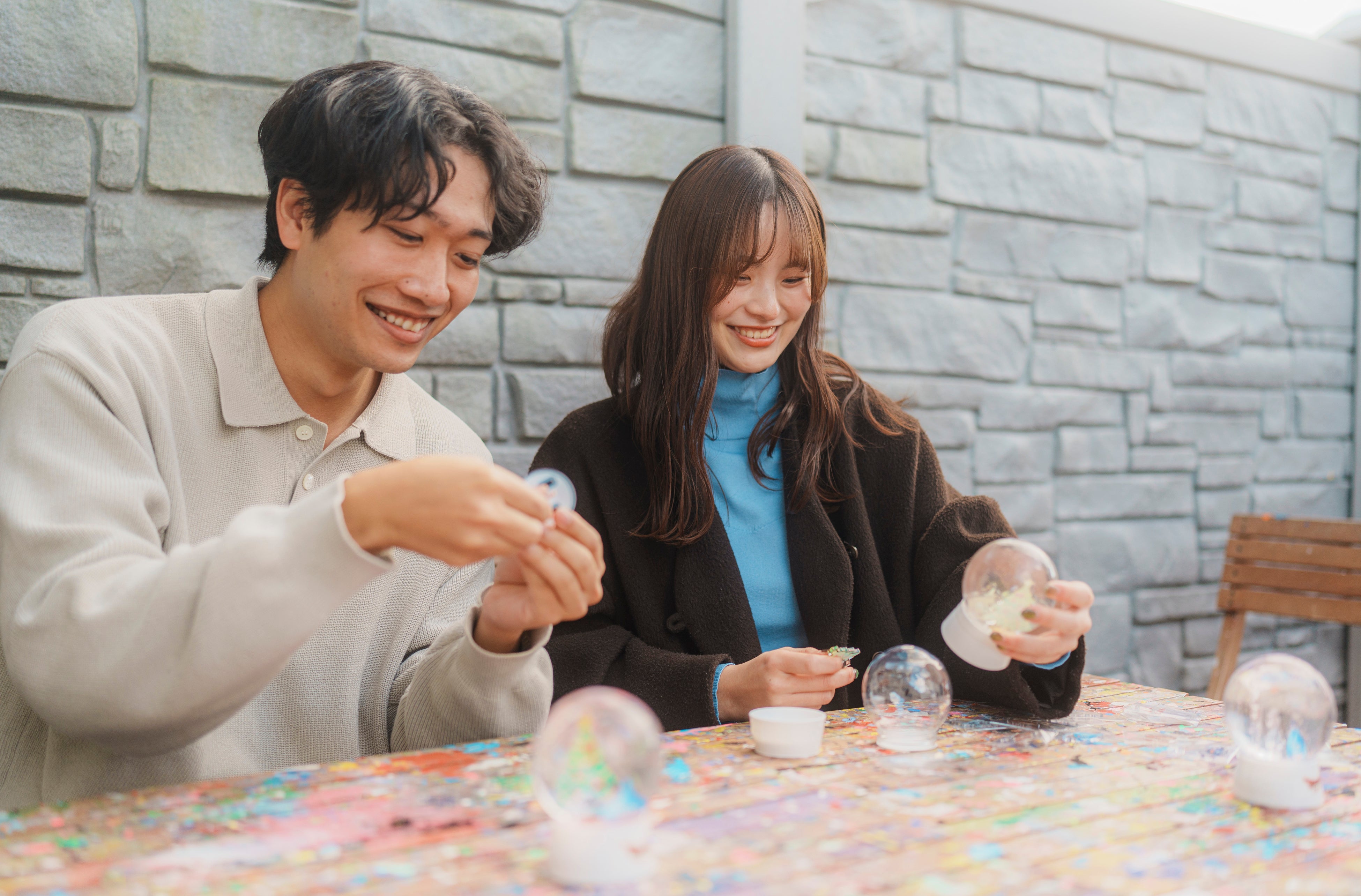 アトラクション隣接のクラフト工房「オノコガルド工房」にて、ドラゴンクエストシリーズに登場するモンスターや城、冬を彩るクリスマスツリーなどのアクリルスタンドを自由に組み合わせて、世界に一つだけのスノードームを制作し、完成品をお持ち帰りいただけます。