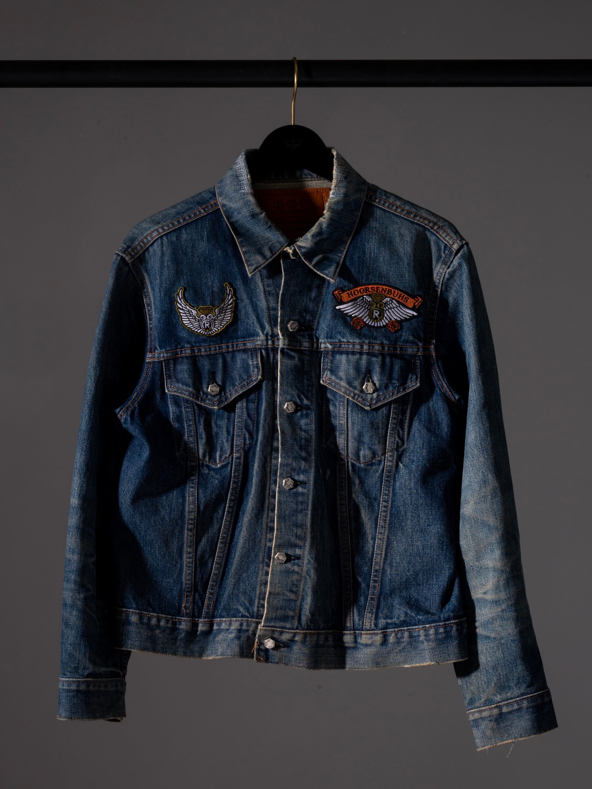 ポケットやボタンフライなどのディテールには、ブランドを象徴するSilver925製のボルトを採用。さらに、カスタムバックポケットの上にはHOORSENBUHS 社製のレザーパッチが縫い付けられ、トライ・リンクの刺繍もあしらわれています。細部にまで宿るブランドの美学が際立つ、デニムジャケットです。