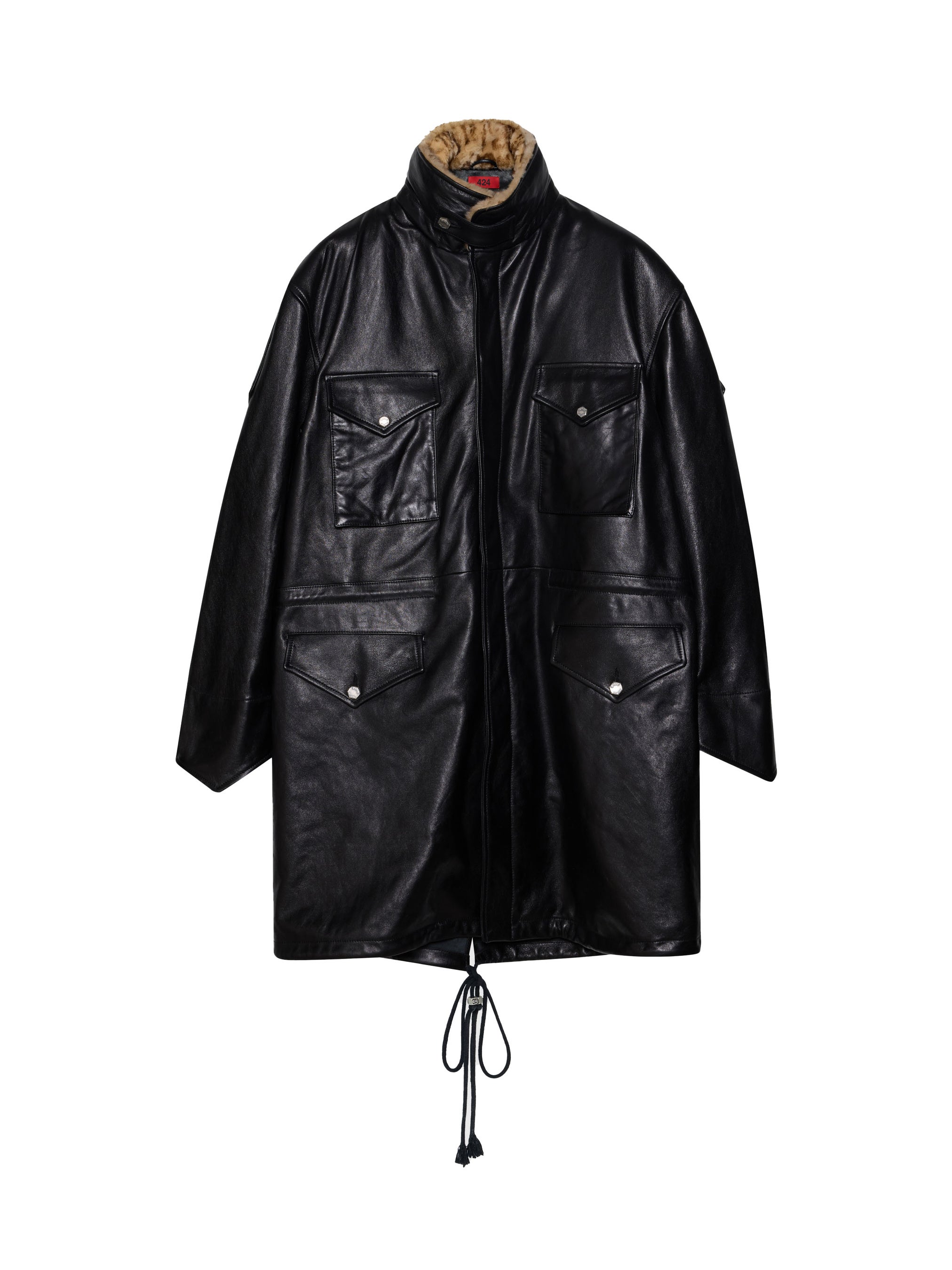 レザージャケットとモッズコートでは、最高フルグレインのラムスキン スムース レザーを使用。424 による高いクオリティの製法で作られたイタリア製レザーウェアに、ロサンゼルスで製造されたHOORSENBUHS のSilver925 のパーツを配した、使い込むほどに美しい色艶となる両ブランドの魅力が溢れるアイテムです。