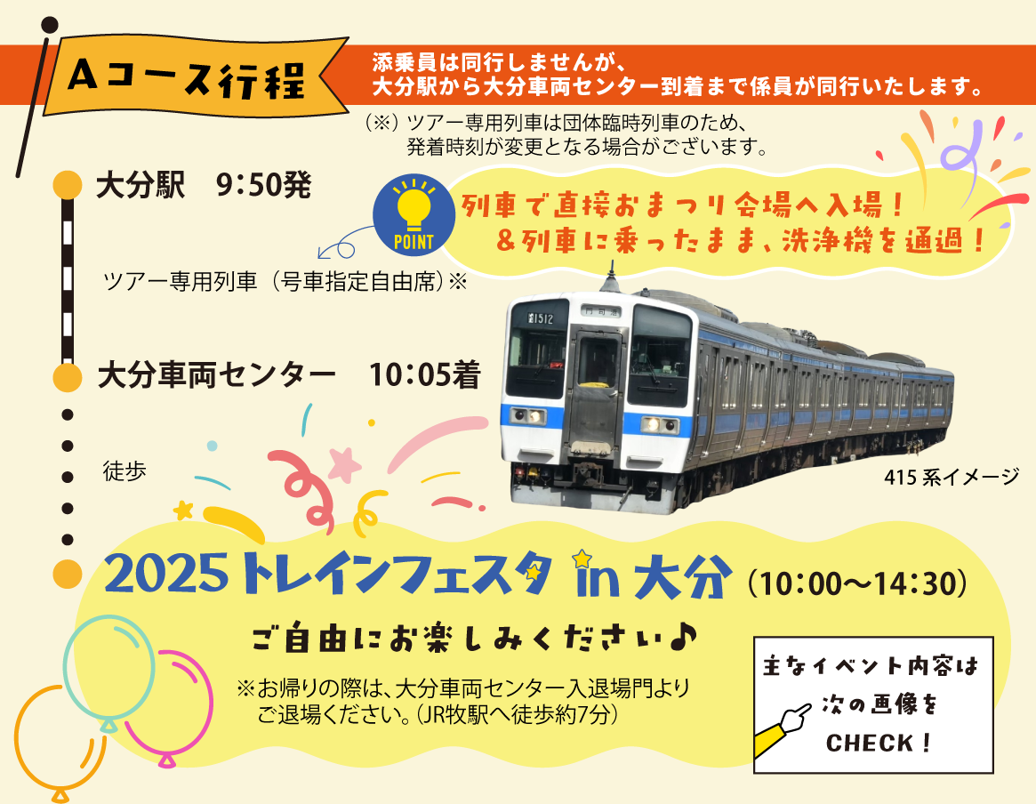 - ツアー専用列車で、「2025トレインフェスタin大分」会場へ直接入場します。
