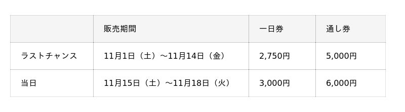 【一日券】開催日のうちの1日に限り入場できるチケットです。
