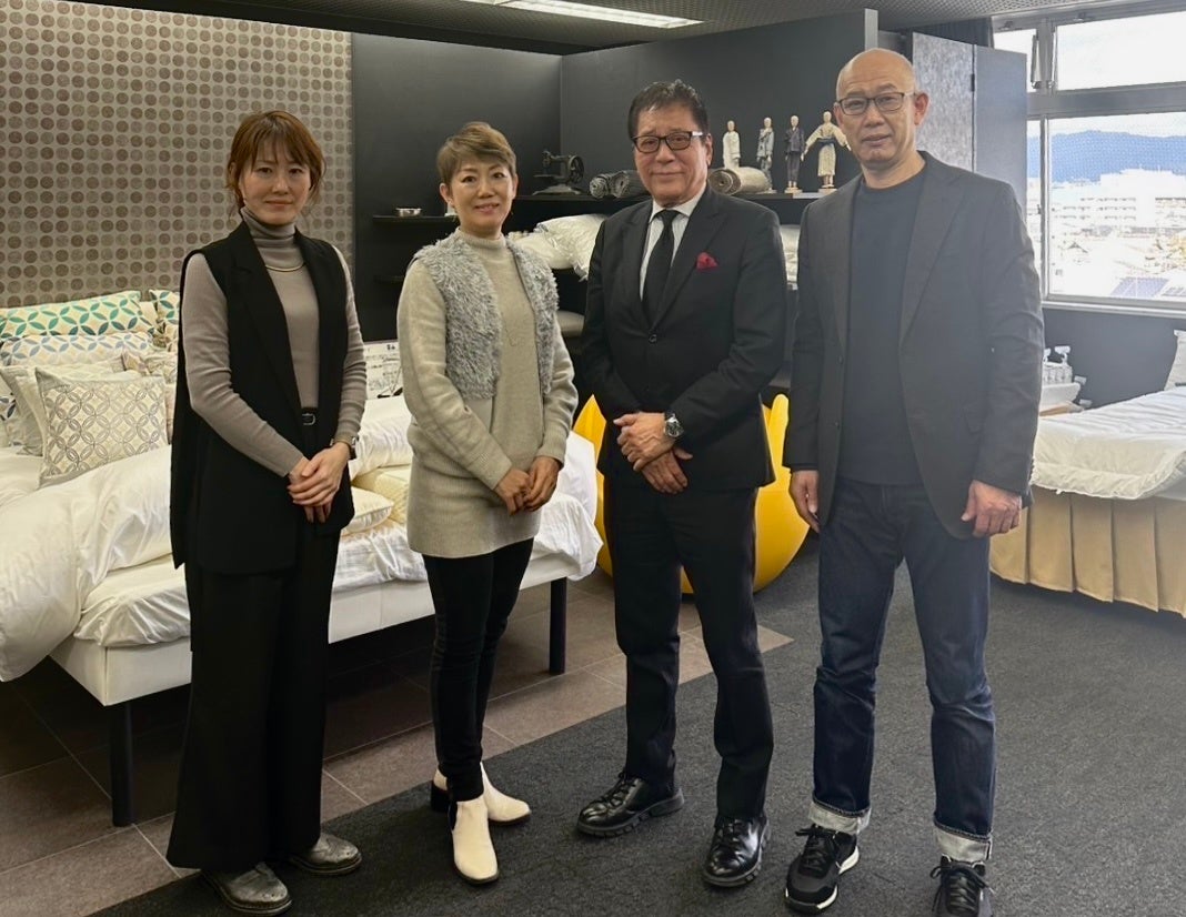 大野株式会社 大野会長(右から2人目)、弊社代表 伊達(左から2人目と右から1人目)、統括マネージャー 中田(左から1人目)