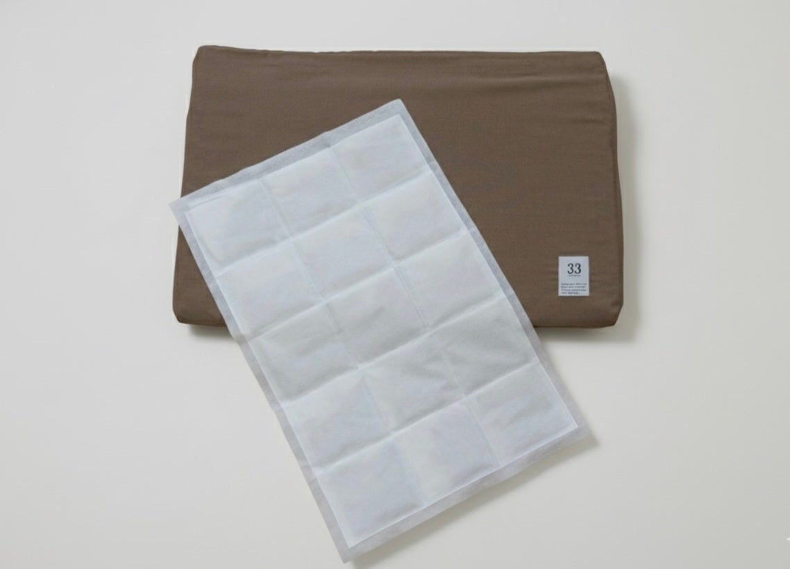 酵素ケアマット(下)米ぬか酵素を敷き詰めたシート(上)