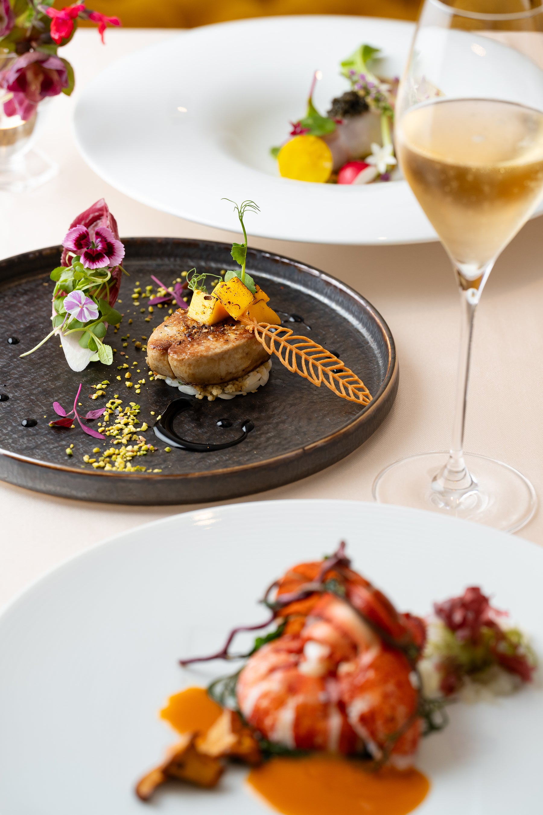 メニューには、キャビアを添えた鮮魚の前菜、鴨フォアグラのポワレ、伝統のダブルコンソメスープ、オマール海老のポワレ、黒トリュフ香る佐賀牛のグリエなどをラインアップ。デザートには、ル・シャンドールによる2025年限定のクリスマススイーツをご用意しております。