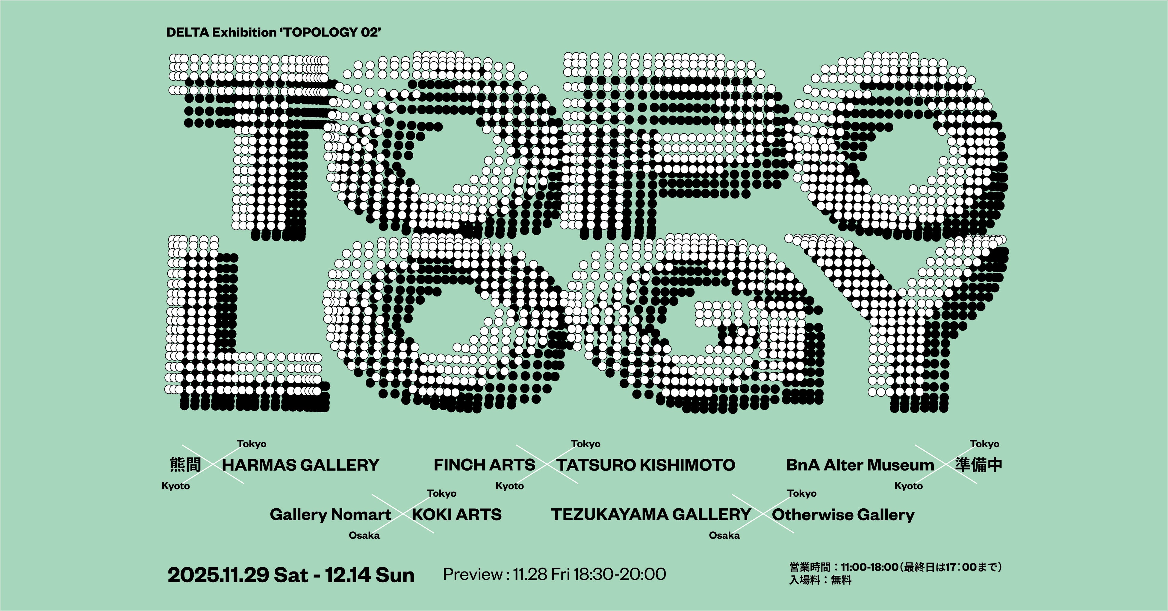 展覧会のタイトルである 「TOPOLOGY(トポロジー)」とは、連続的に変化しても失われない「隠れた性質」に注目する思考体系を指します。本展では、拠点や背景の異なるディレクターとアーティストの世代を越えた協働を通して、TOPOLOGYの概念と、プロジェクトの根幹にある「変化の中に保たれるつながり」という考えを示します。多角的な視点から現在進行形のアートを紹介することで、領域を横断した価値観や思考に触れることができ、有機的なコミュニケーションが生まれる「場」となることを目指します。