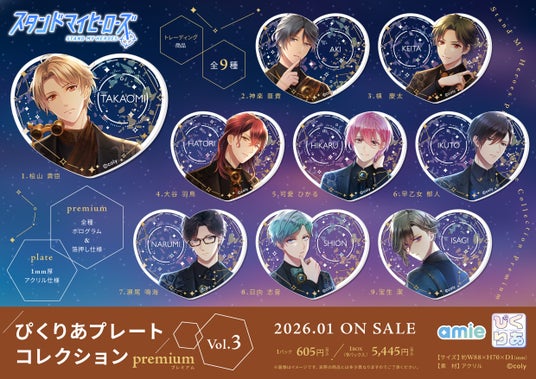 フィギュア&ホビー通販大手の「あみあみ」を運営する大網株式会社(本社・東京都文京区)は、自社が展開するグッズブランド「amie(アミィ)」から『スタンドマイヒーローズ ぴくりあプレートコレクション premium Vol.1~3』を、現在ご案内中です。