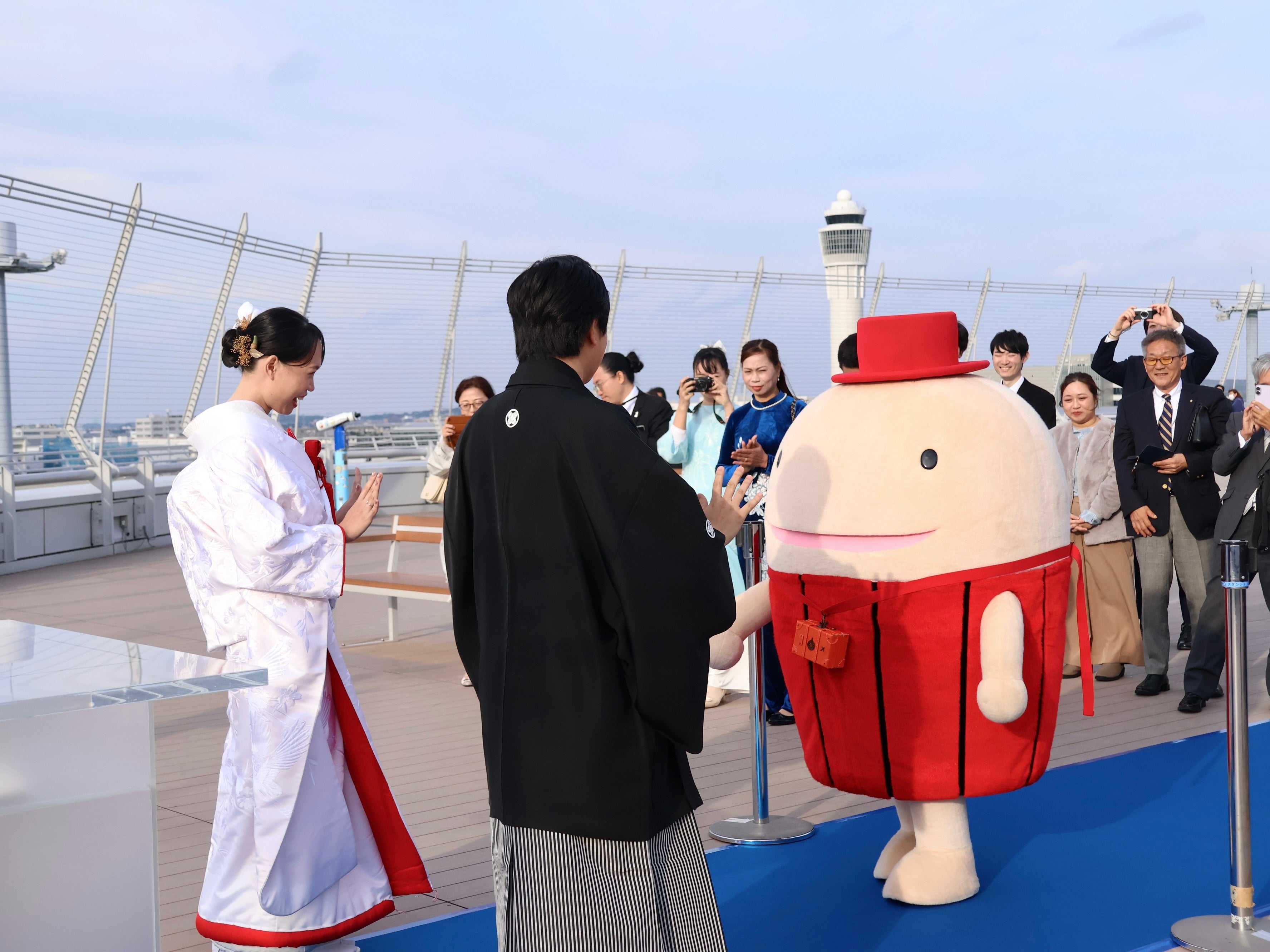 ■ 11月2日(日): 国際カップルの和装ウェディングを空港キャラクターが祝福