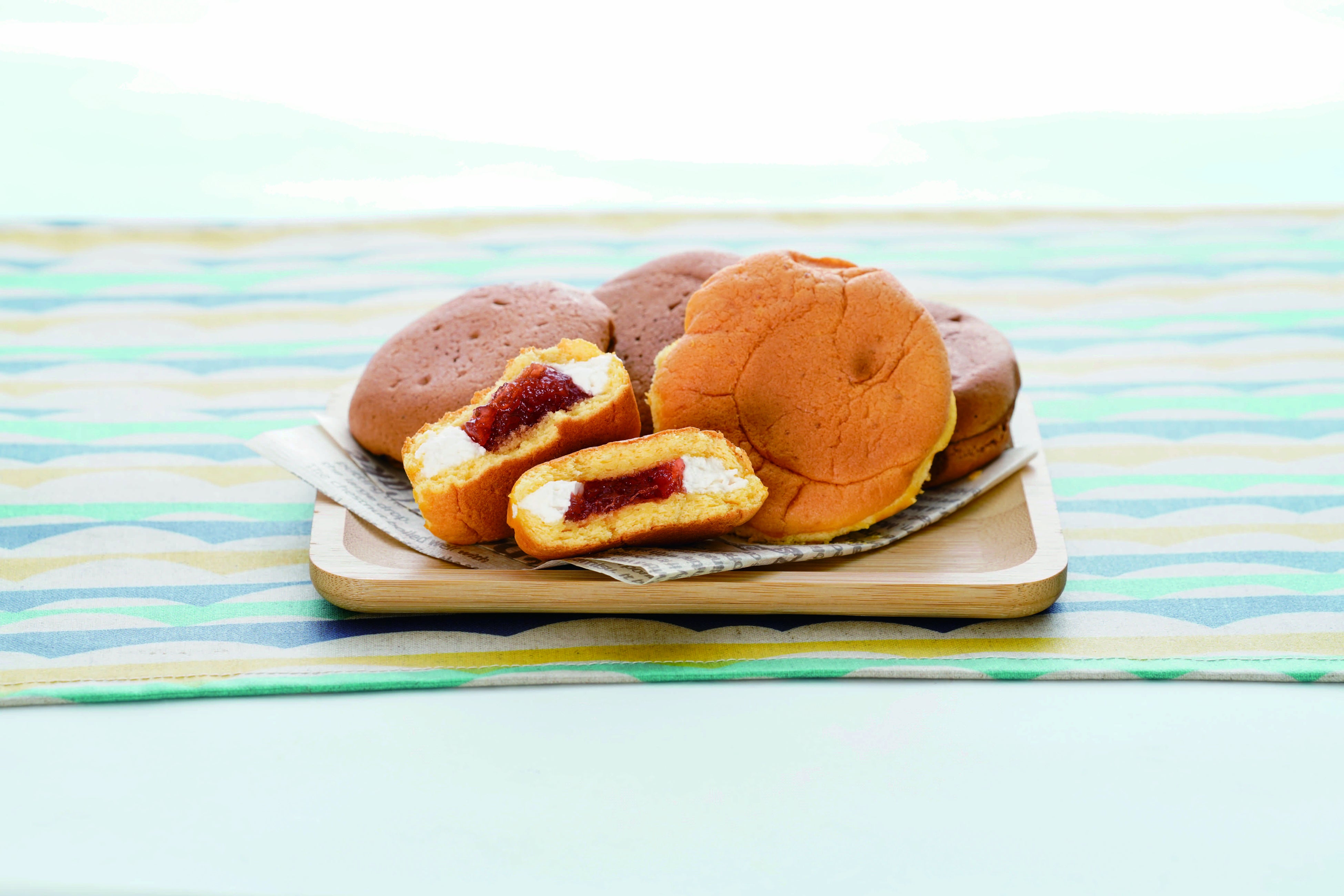 (ピュイ・ダムール)丸ごといちごとデコポンの自家製ジャムをサンドしており、プレーン生地にはいちごジャム、ショコラ生地にはデコポンジャムをサンドしています。