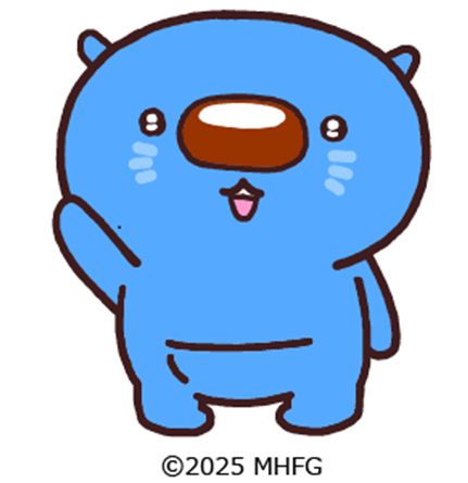 みずほFGの公式キャラクター“あおまる”は、商品・サービスを分かりやすく説明する、〈みずほ〉の社員です。コーポレートカラーと同じ毛色をもつウォンバットで、トレードマークのお腹のポケットにはスマホなどの生活に役立つものが入っています。