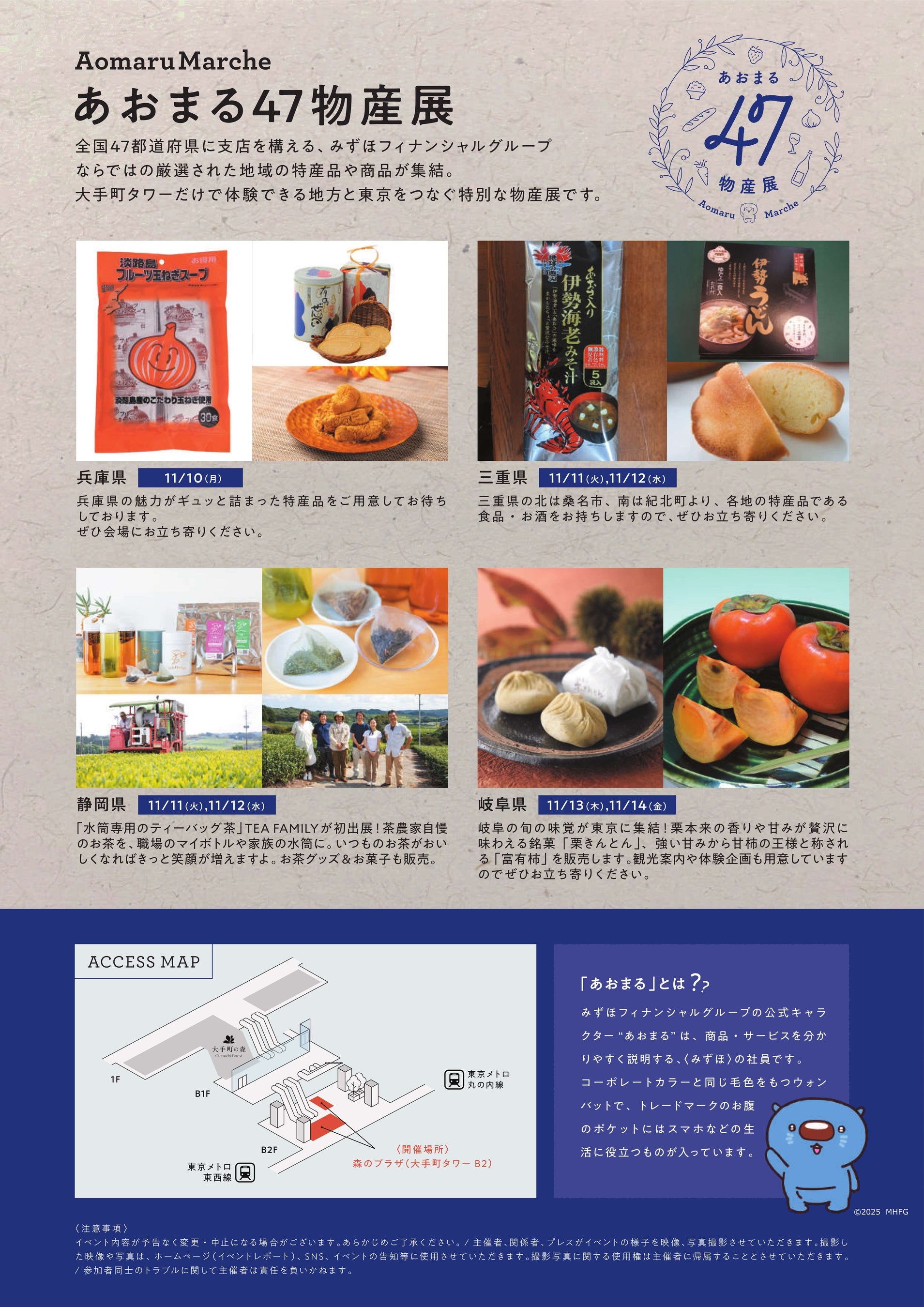 ・ 47都道府県の名産品を集めた「あおまる47物産展」を大手町タワーで2025年1月より定期開催