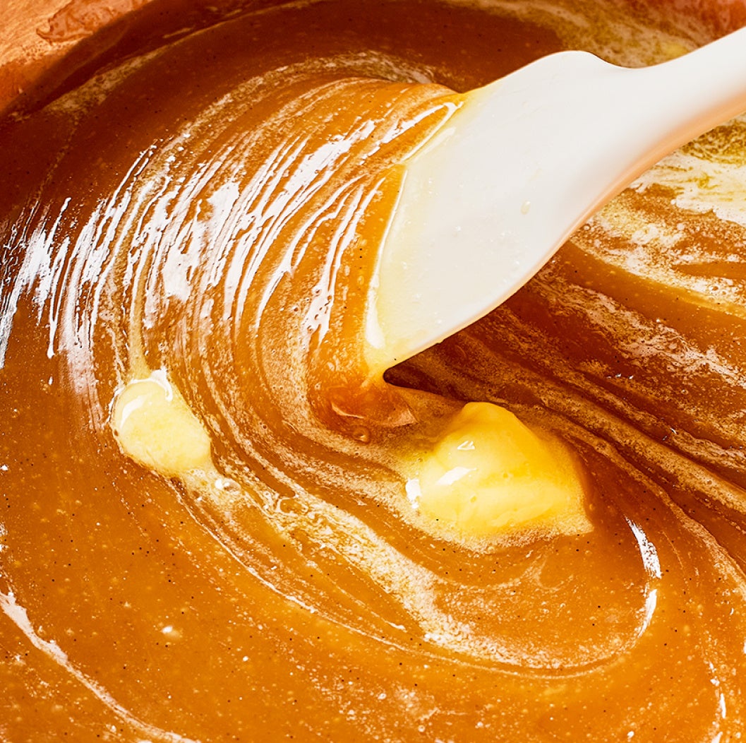 炊き上げたキャラメルの余熱で、自家製の生バターをそっと溶かし込む独自の製法。生キャラメルの深く心地よいコクの余韻が広がります。