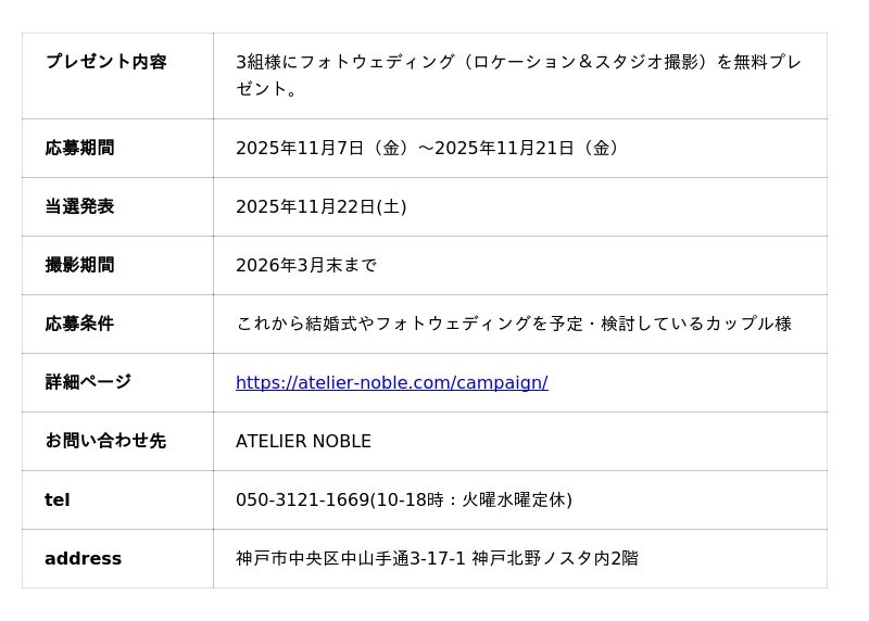 公式ウェブサイト:https://atelier-noble.com/