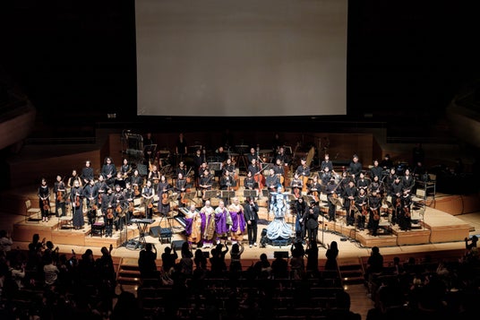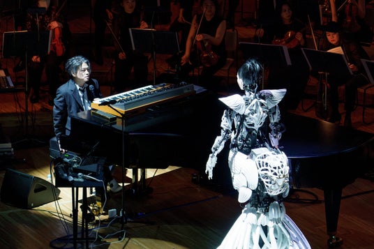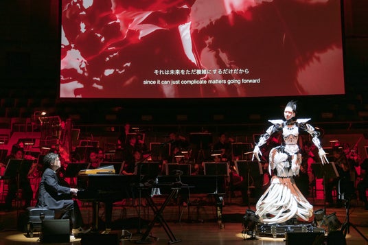 ステージには、渋谷の亡き妻をモデルとした「アンドロイド・マリア」が初登場、歌唱を披露。気鋭のヴァイオリニスト成田達輝をコンサートマスターに迎えた62名のスペシャルオーケストラ、藤原栄善を中心とした4人の高野山の僧侶による声明、電子音、リアルタイムでのAI会話など、異なる要素が有機的に融合するなかスペシャルゲストとして、グラミー受賞ベーシストのシャーロット・ケンプ・ミュール(Charlotte Kemp Muhl)も登場して、渋谷、アンドロイド・マリア、僧侶たちとのコラボレーションも披露した。