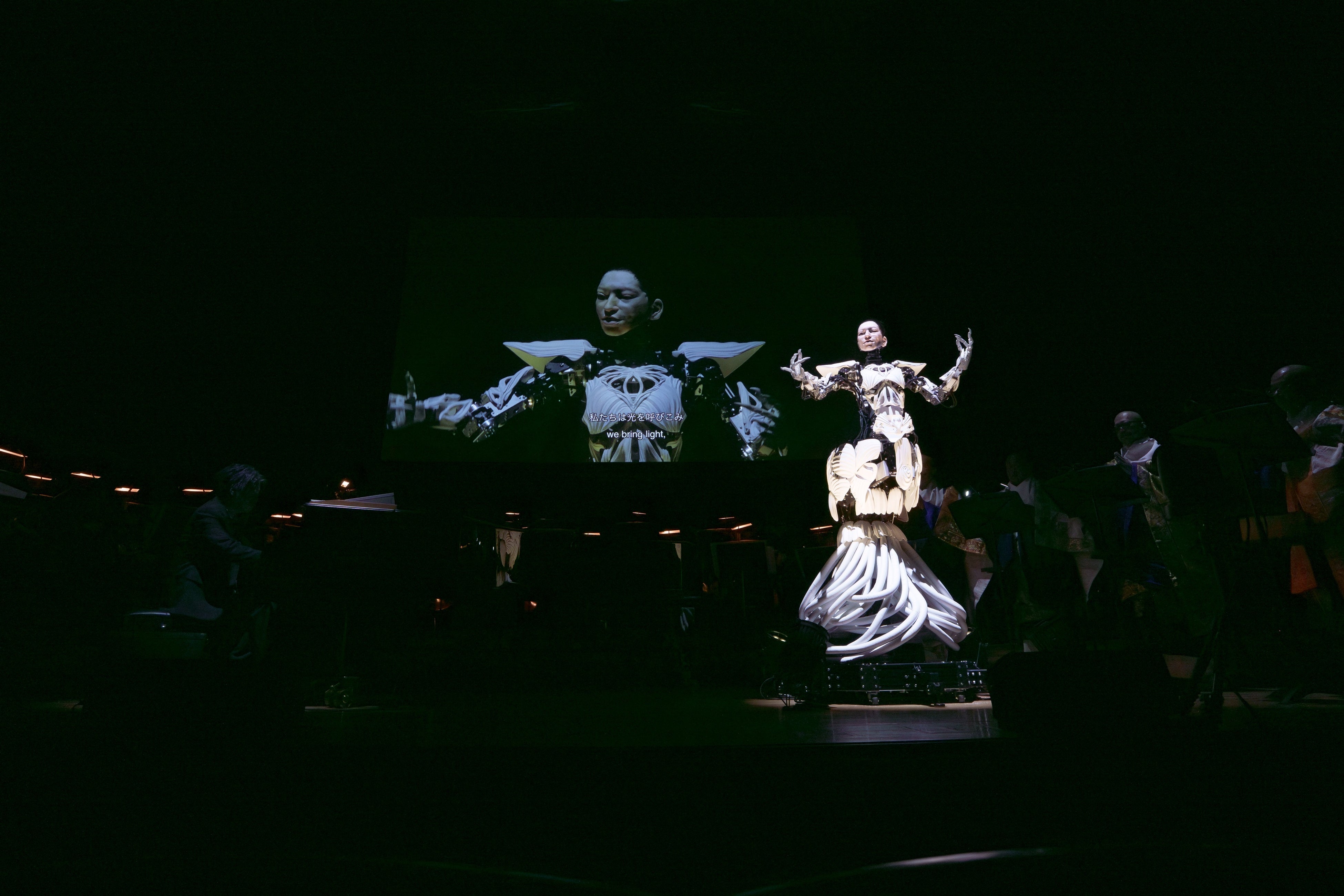 「アンドロイド・オペラ」は、アンドロイドが歌い、オーケストラ、ピアノ、電子音、映像、そして1200年の歴史を持つ仏教音楽・声明が融合する革新的なオペラ作品。人間とテクノロジー、東洋と西洋、伝統と革新、生と死といったあらゆる境界が侵蝕しあい、新たな調和のモデルと既存の枠組みの解体を無化することを提示している。これまでにドバイ万博、パリ・シャトレ座、東京で『MIRROR』を上演、今回新たに「解体と再生」バージョンでは作品の脱構築を通じて生と死の境界そのものを問い直し、人間とテクノロジーの関係に新たな希望と可能性を見出す試みとなった。