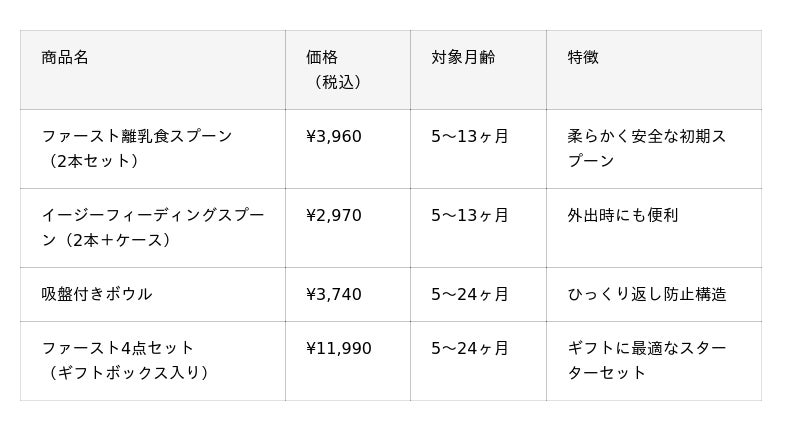 医療グレードのプラチナシリコンを使用した安全設計と、赤ちゃんの「自分で食べる」を応援するデザインが特徴で、初めての離乳食や、出産祝いなどのギフト需要にも最適なアイテムです。