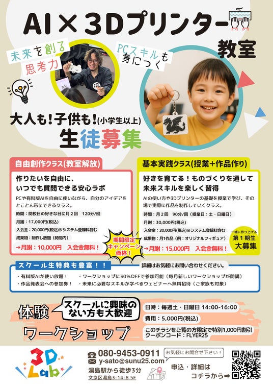 3DLab(東京・湯島)は、生成AIと3Dプリンターを融合させた楽しく学べるスクールです。