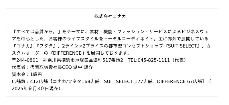 取扱店舗:コナカ・フタタ全店舗