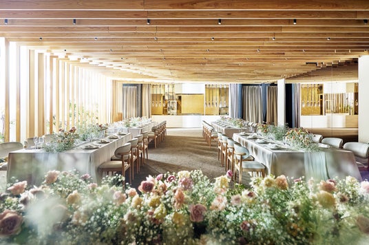 今回のリニューアルでは、従来ご好評いただいていた“ライブキッチン”を引き続き設置しつつ、それぞれの会場に新たなテーマを設定。「あおば」は日本の伝統的な美意識を感じられる「縁側」をモチーフに、穏やかで落ち着いた空間へと生まれ変わりました。