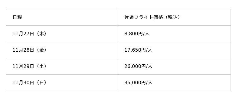 実施期間:2025年11月27日(木)~11月30日(日)※11月27日のみ午後のみ運航