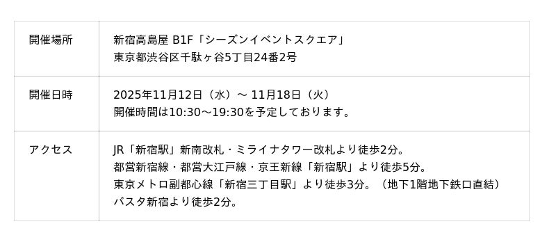 2025年11月12日から18日まで、新宿高島屋B1Fに期間限定OPEN