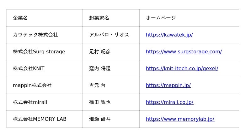 以下のとおり6社のスタートアップの参加が決定しました。■参加スタートアップ(五十音順、敬称略)