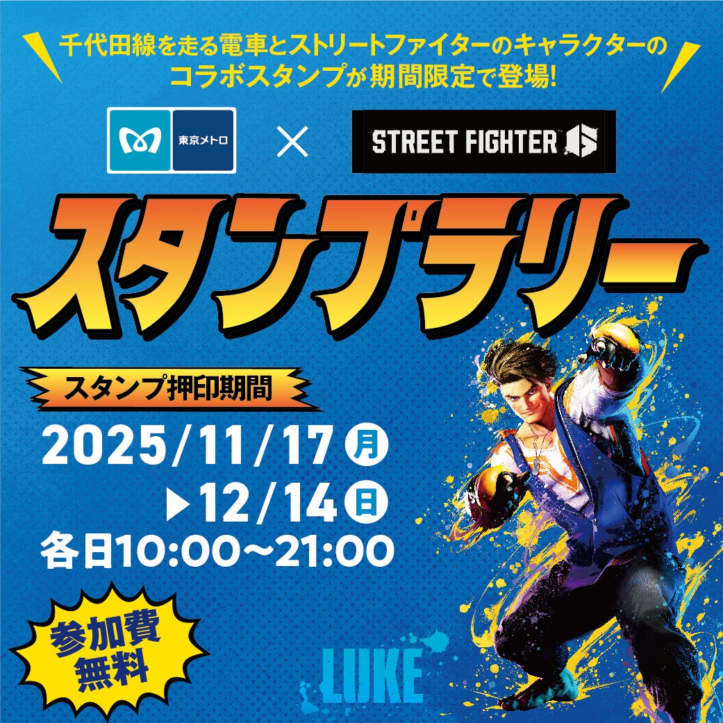 三井ショッピングパーク ららテラス北綾瀬(運営:三井不動産商業マネジメント株式会社)は、2025年11月17日(月)~12月14日(日)まで、「東京メトロ×STREET FIGHTER 6スタンプラリー」と題し、千代田線車両とSTREET FIGHTER 6のキャラクターのコラボスタンプラリーを実施いたします。