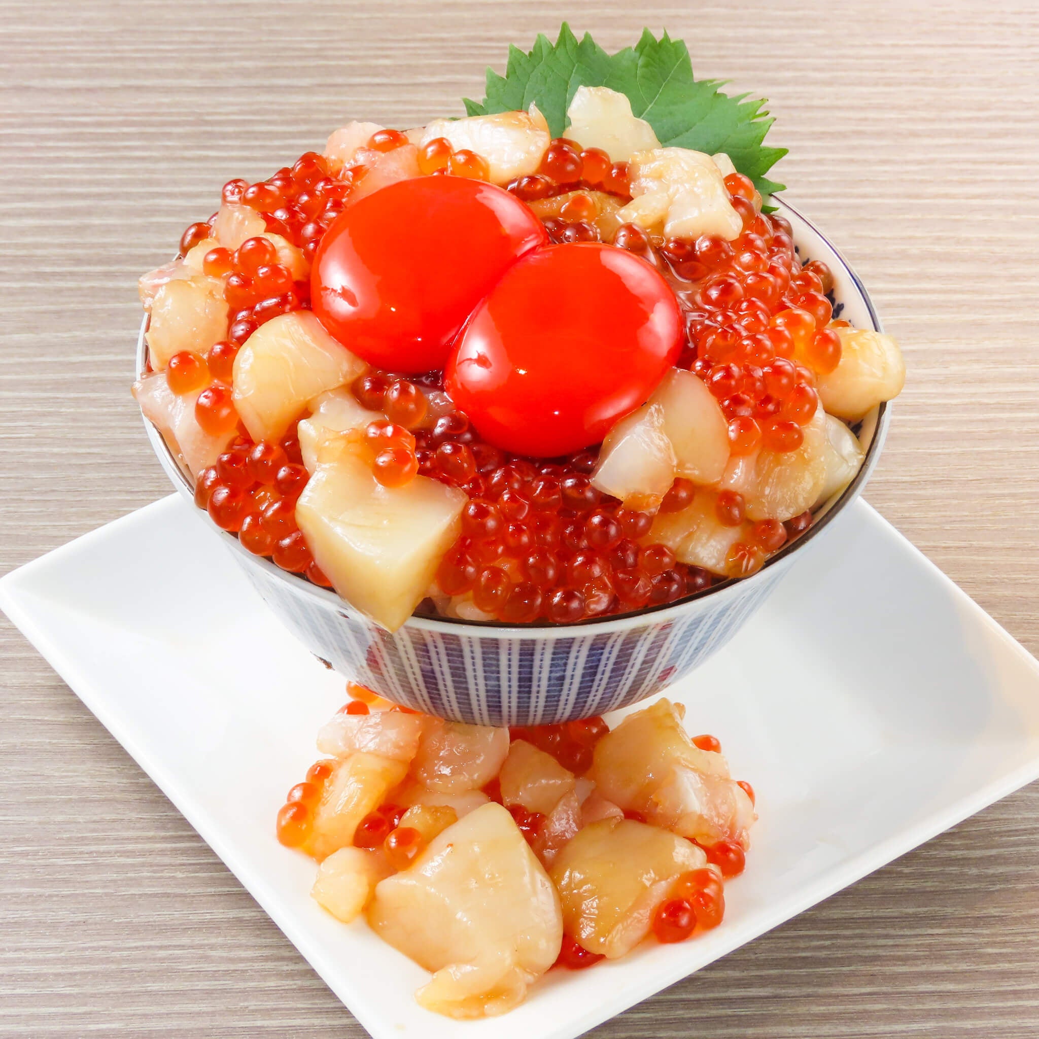 1.魚祭名物 つっこめし新鮮なお魚とホタテのぶつ切り、たっぷりのいくらを特製ダレに漬け込み、贅沢に盛り付けました。