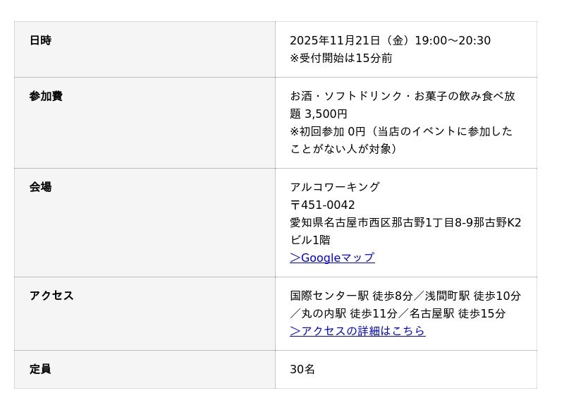 当イベントは、愛知県名古屋市のお酒飲み放題コワーキングスペース「アルコワーキング」が主催しています。
