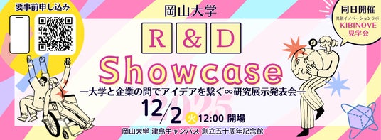 なお本学では、企業や自治体の皆さまに最新研究成果を直接ご覧いただき、共同研究・新規事業化のきっかけとして活用いただく年に一度のイベント「岡山大学 R&D Showcase 2025」を2025年12月2日(火)に本学津島キャンパス創立五十周年記念館にて開催します。ぜひご参加ください。