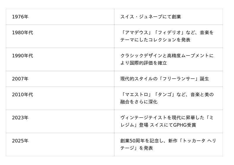 トッカータコレクションの新シリーズとして、トッカータ ヘリテージのファーストモデルを11月21日(金)に発売いたします。本作では、上品な趣を備えた手巻きムーブメント搭載の2針デザインを採用。レイモンド ウェイル創業50周年を目前に控え、ブランドの原点である伝統・革新・音楽性をあらためて見つめ直し、古典的な魅力と現代的な洗練が響き合う「時の旋律」として、世代を超えて愛される新たなトッカータを提案いたします。