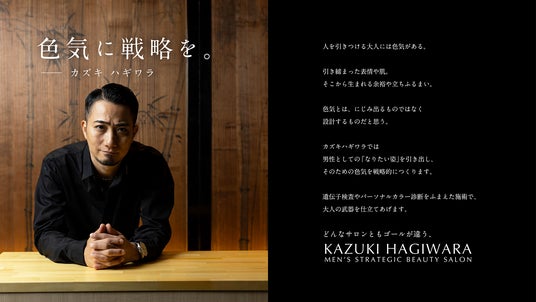 【11/16 京都市・四条烏丸にOPEN】「色気に戦略を。」大人の男性のなりたい姿を叶えるメンズ専門美容サロン KAZUKI HAGIWARA MEN’S STRATEGIC BEAUTY SALON