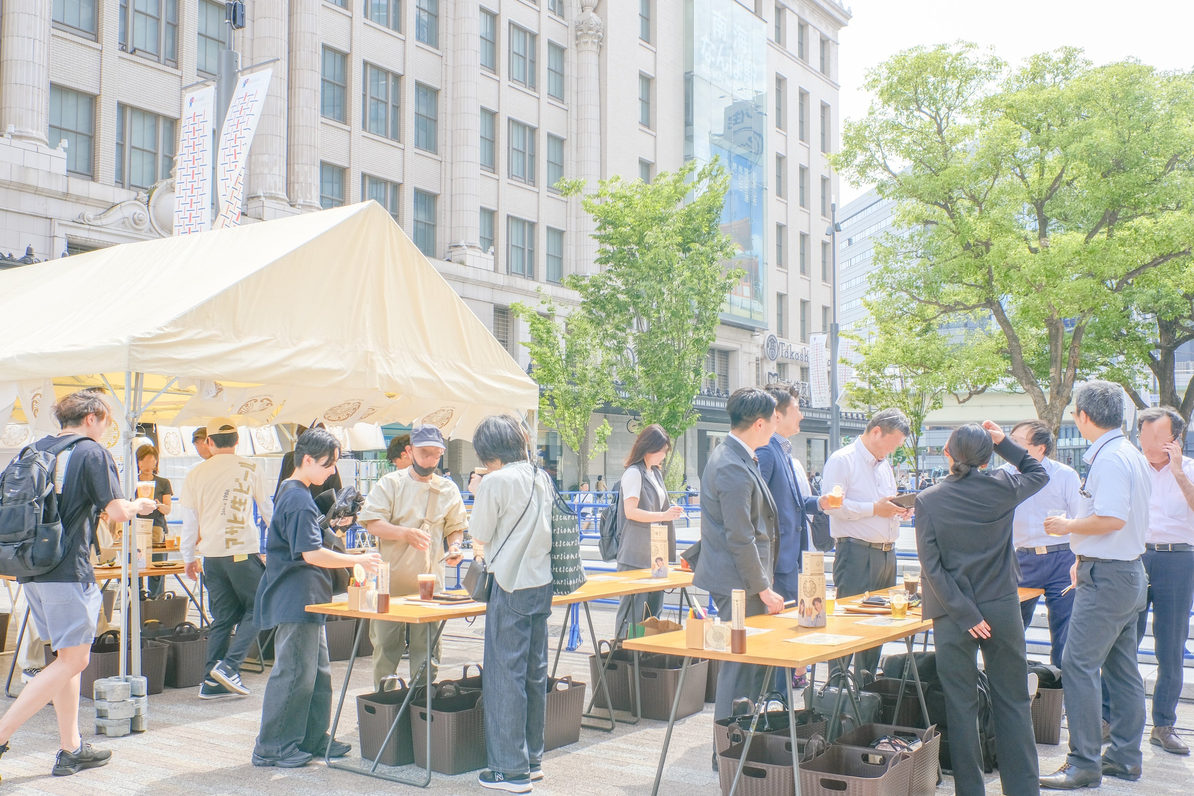 「なんば広場」は、難波駅周辺の道路空間を、車中心の空間から人中心の空間へと再編し、エリアマネジメント活動により、世界をひきつける観光拠点として上質で居心地の良い空間の創出を図る事業として、整備されました。2025年9月1日から、大阪市による「なんば広場(仮称)における歩行者利便増進施設等のための道路占用者の公募」に採択された「なんば広場マネジメント法人設立準備委員会(以下、準備委員会)」が、なんば広場の管理運営を行っています。準備委員会は「なんば広場」およびなんさん通りの歩行者空間(歩行者利便増進道路(通称:ほこみち))の占用者として、民間イベントの誘致などを積極的に行い、難波駅周辺を訪れるお客さまにとって、ますます居心地の良い、回遊しやすい空間となることを目指します。なんば広場公式サイト