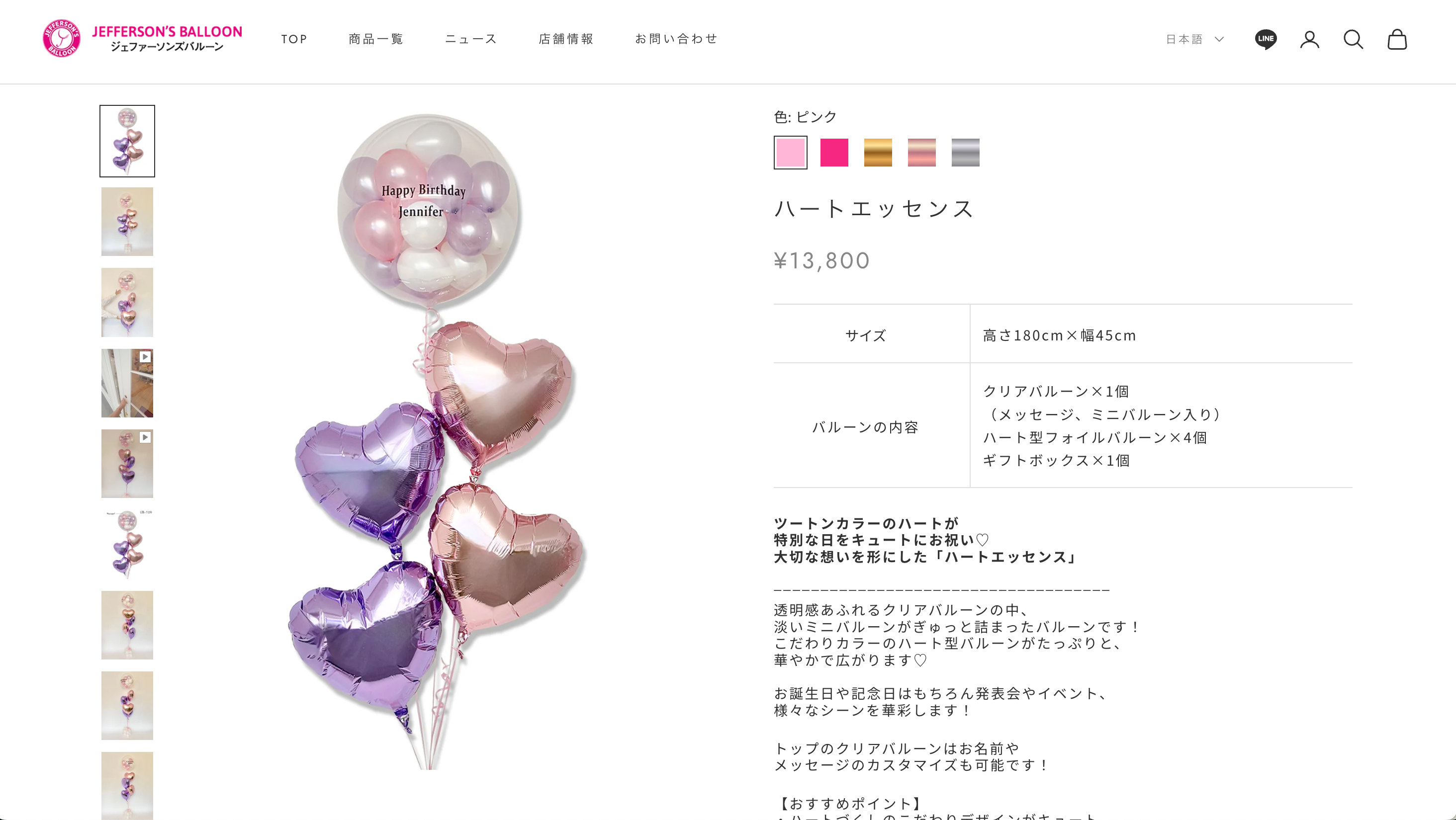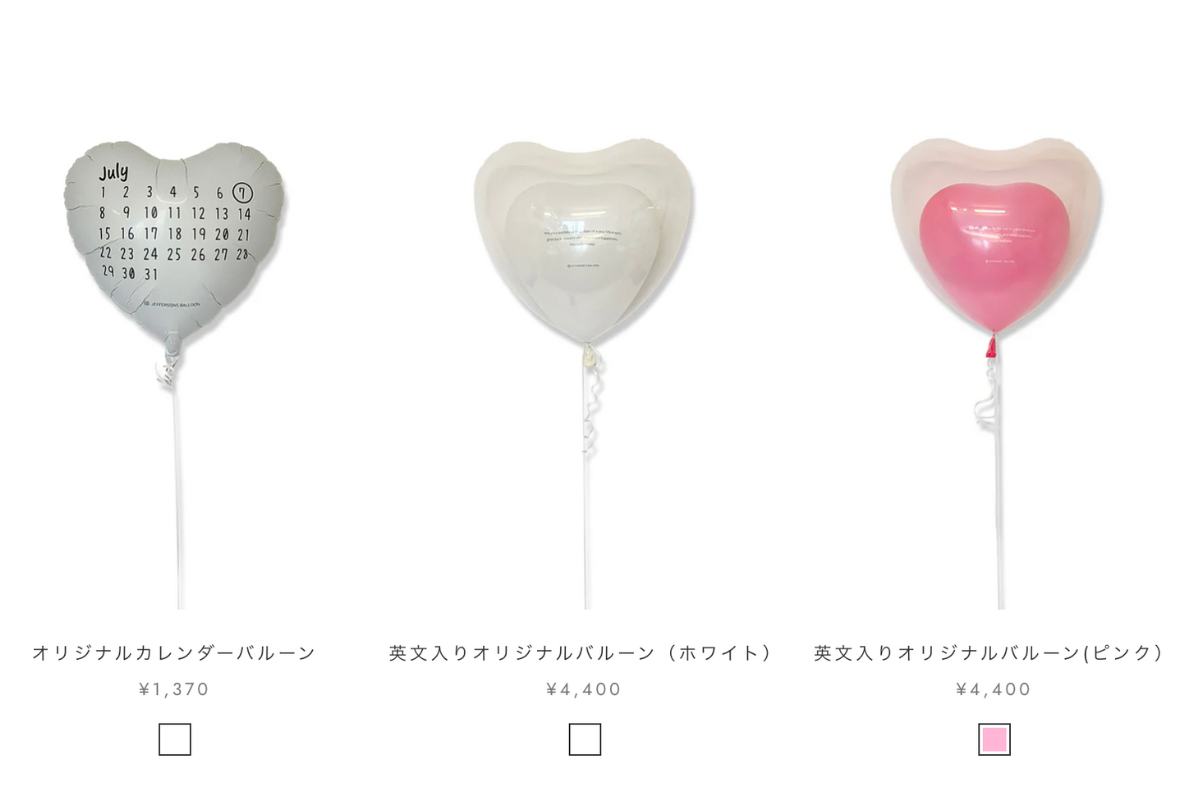 商品ページ内の写真・動画を強化し、より“選びやすく・想像しやすい”オンラインストアを目指しました。カラー展開もわかりやすく表示し、シーンに合わせて最適なバルーンを選べるようになりました。