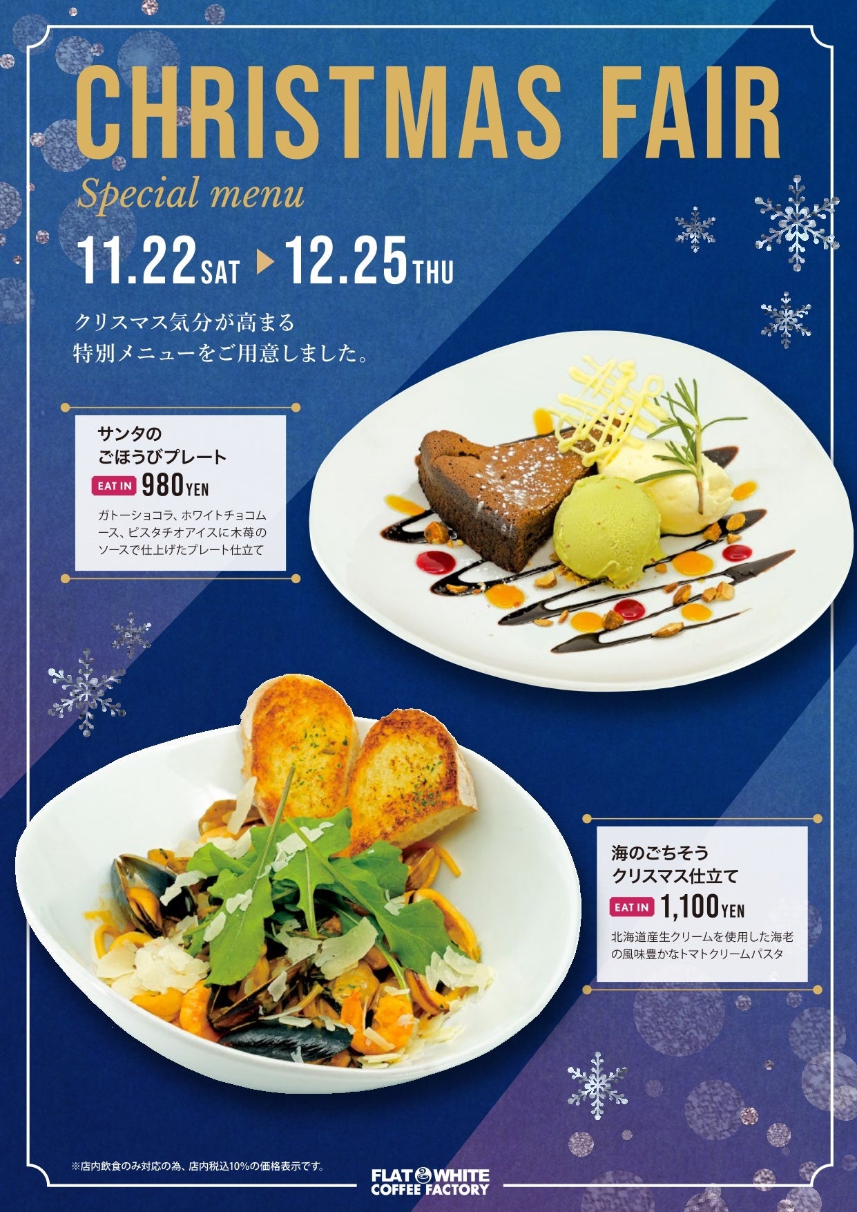 「FLATWHITE COFFEE FACTORY」では、期間限定のクリスマスメニューを提供します。Instagram:@flatwhite.jp