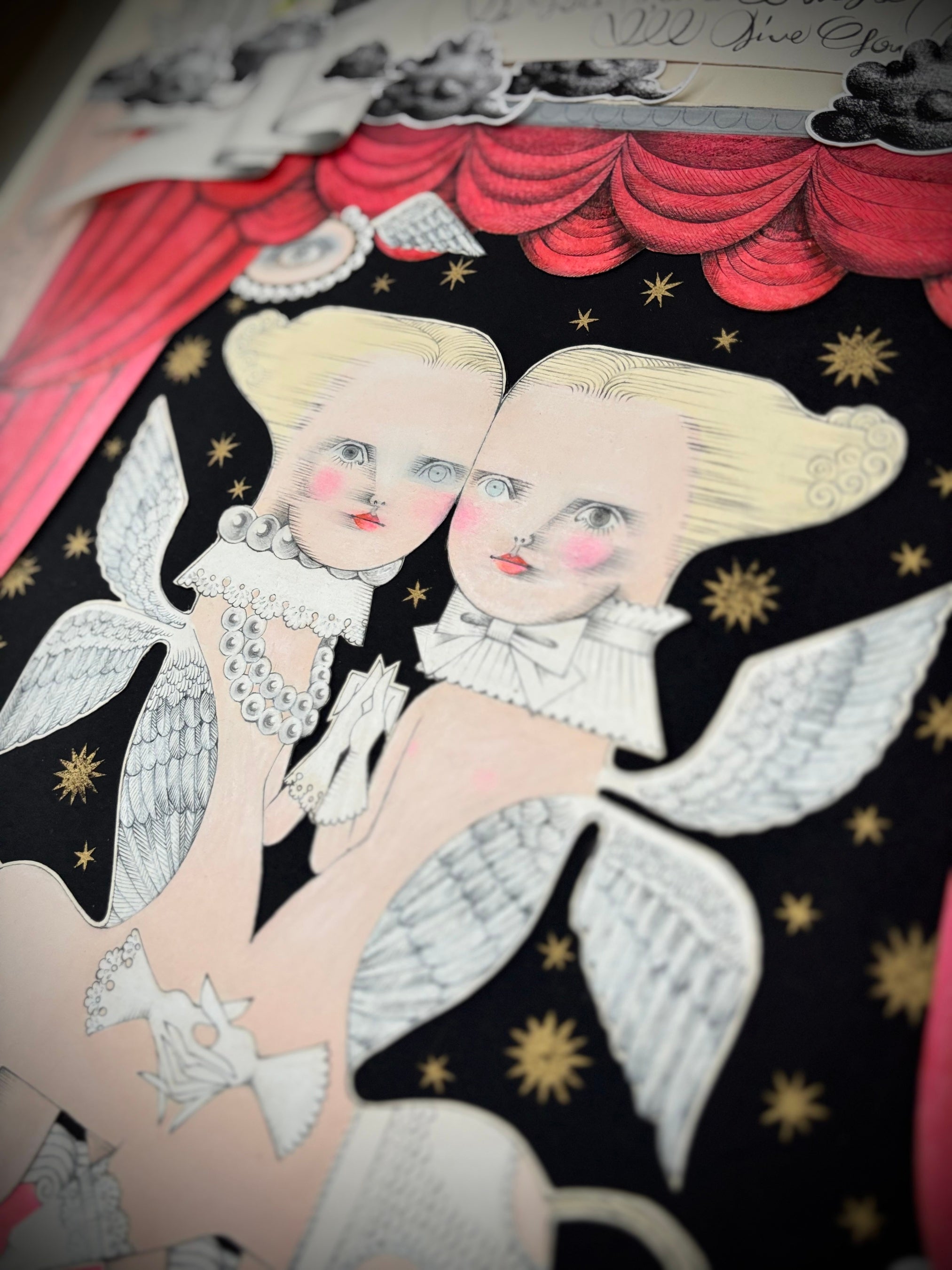 『クラシカルなクリスマス』と縁が深い『天使』を中心に私達に馴染み深い日本のクリスマス(ケーキやパーティー)をミックスして『イグーネだけのクリスマス』を制作しました。天使には私達が知る他にも、様々な姿形があるということ、クリスマスシーズンに活発になるふたご座流星群からもイメージを膨らませて。。。 夜空をバックにケーキのステージでダンスする『ふたごの天使』と一緒にひとときの間、忙しない時間を忘れられますように!皆様の元にも天使が訪れますように!