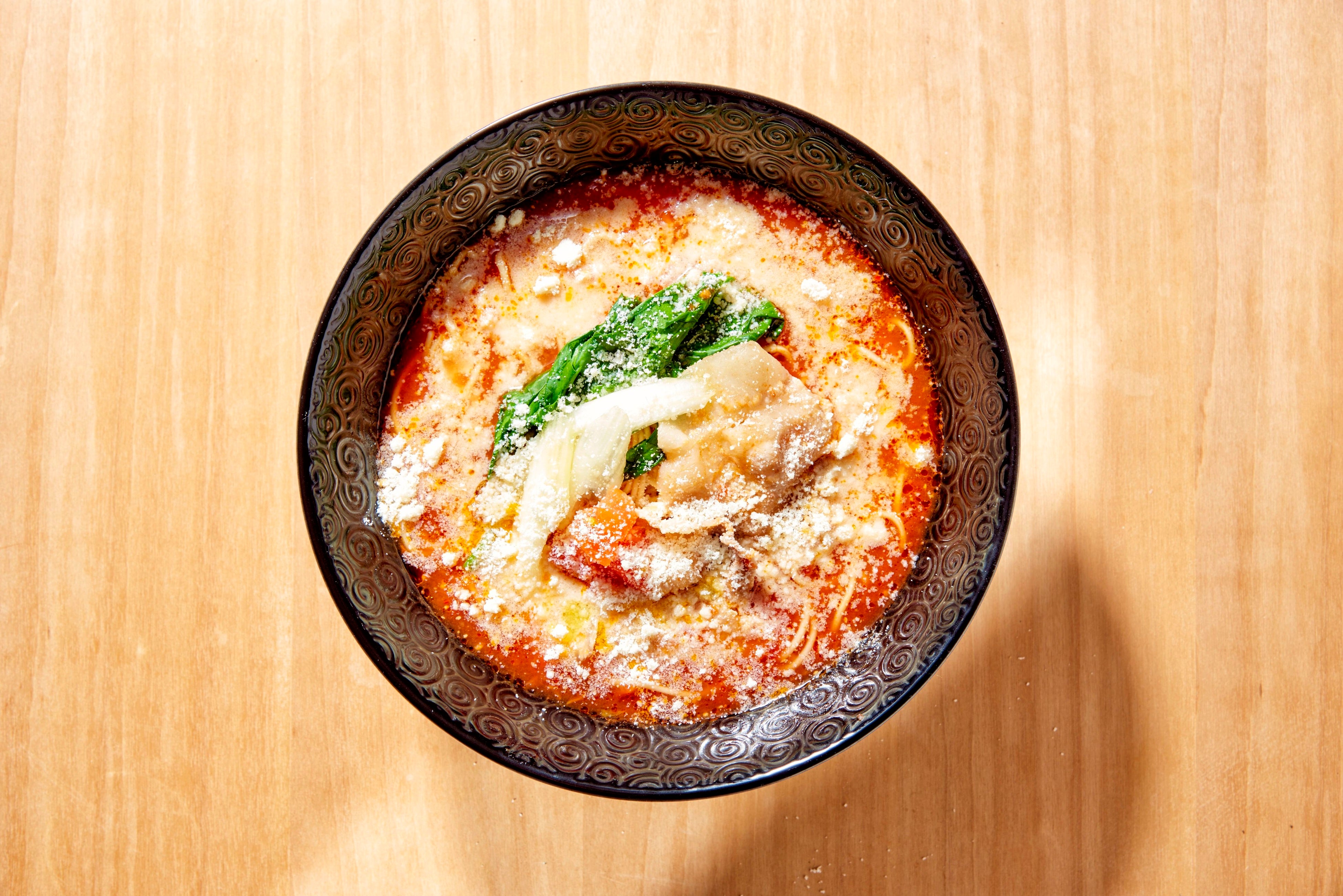元祖トマトラーメン最高級グラナパダーノチーズトッピング