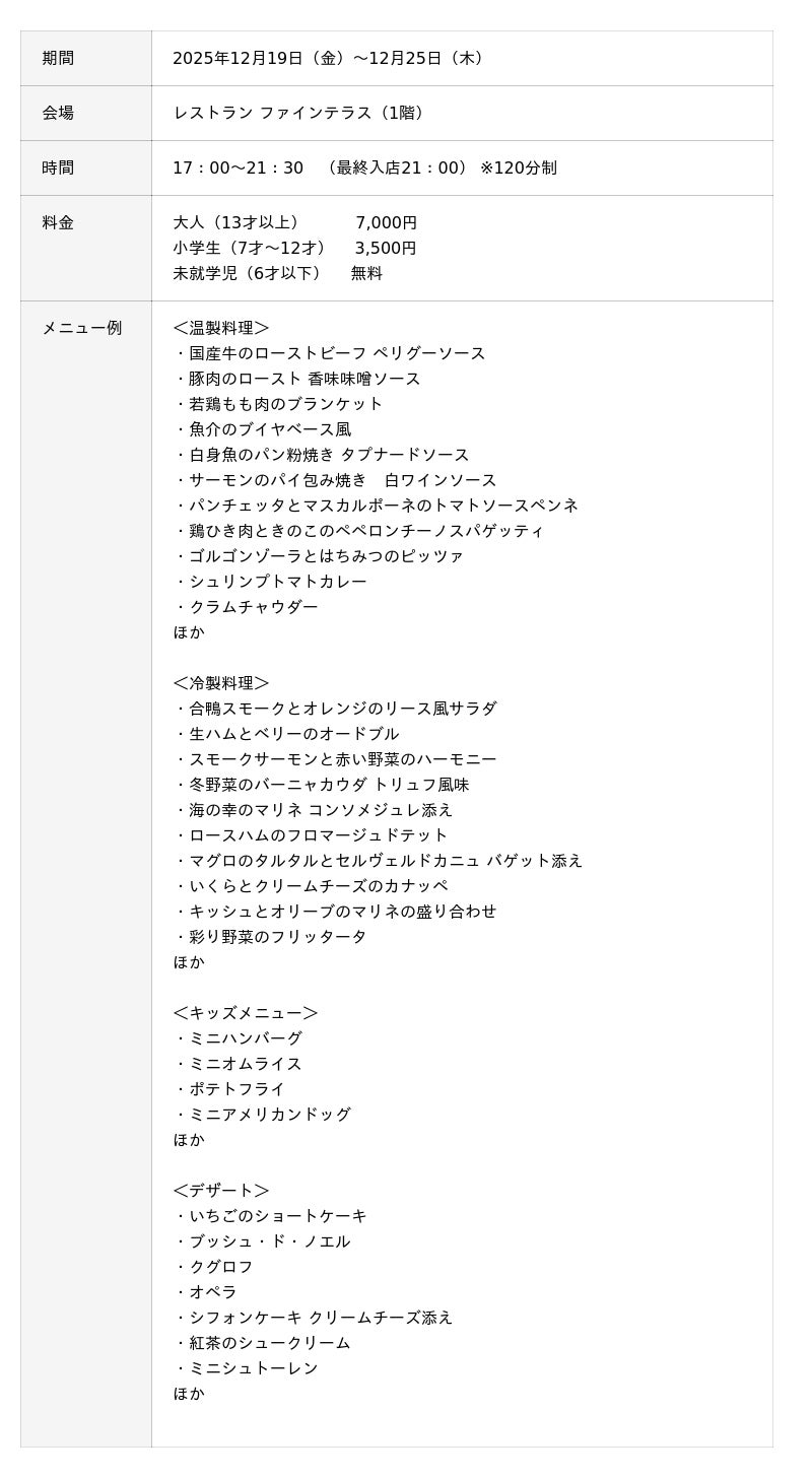 「クリスマススペシャルディナービュッフェ」 概要