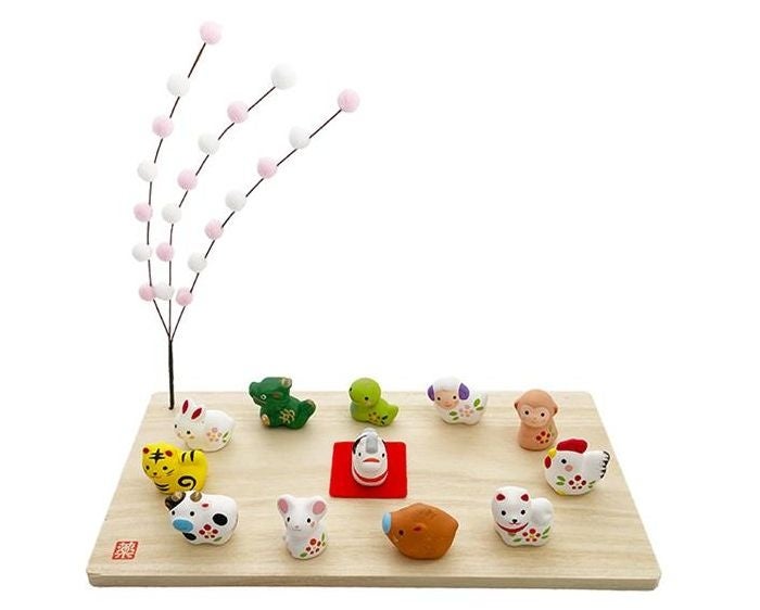 ●ロフト限定/薬師窯 錦彩招福十二支飾り 白木台餅花付き(中外陶園) 4,400円