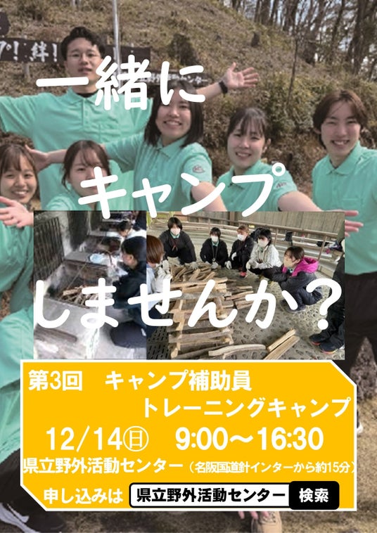 センターで勤めているキャンプ補助員(大学生)たちと一緒にキャンプで使えるテクニックやキャンプファイヤーの楽しみ方を教わりませんか?センターの所員が楽しく丁寧に指導します。